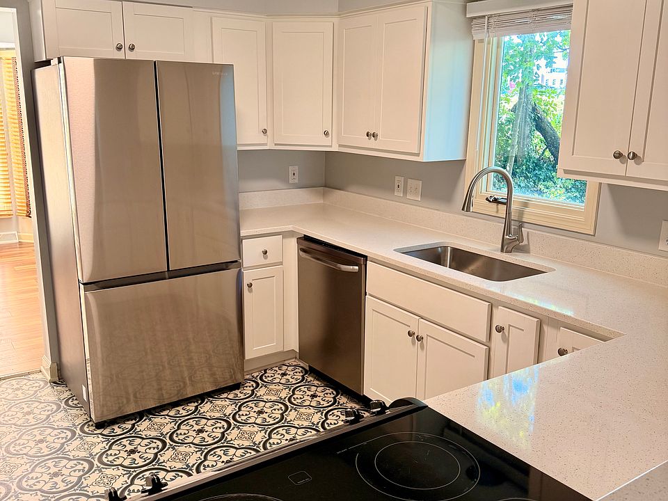 Modern fixturesSleek cabinetryMain-level half bathPrivate outdoor spaceMove-in ready styleTwo-car garageTwo large bedrooms