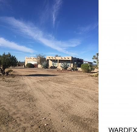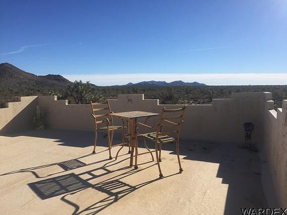 Beautiful, Spacious, Santa Fe Ranch Home located on 40 acres, nestled within the Hualapai Mountain Range of the Stagecoach Coach Trails. 2 Bedroom/2 bath with a Den that can be used as a 3rd bedroom. Open floorplan which includes a living room, great room/dining area, with a cozy kitchen. Utility room with washer/dryer included. Detached 2 car garage with a lookout/seating area on top accessible by a steel spiral staircase. Separate Solar Shed which houses a 1200 watt solar system, 6K watt generator, water tank regulator and extra space to use for storage. 360 degree, panoramic views of Hualapia, McKracken, Black Mountains! Abundant wildlife too!