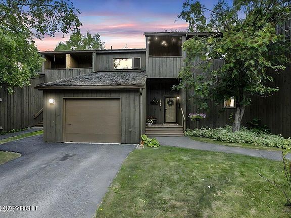 Updated townhome close to hospitals & UAA! Easy access to Chester Creek trail system and close to Tikishla park! Recent updates include kitchen cabinets & counters, new fridge & microwave, new subfloor & flooring, new tile in main entry, new tile & vanity/sink in 1/2 bath, new paint, lighting, living room banister, & more! Large newly painted deck off living room & 2 addtl decks for outdoor spaceLaundry upstairs close to bedrooms for added convenience! Primary bedroom features a private bathroom & walk in closet. Fireplace in living room & sauna upstairs for the cozy winter nights in! Good size (22' wide x 21' deep w/16' wide door) 2 car detached heated garage for parking and storage. Neighborhood is beautifully maintained with nice landscaping, great sidewalks, tennis courts, and RV parking available. Keybank offering $5000 CC for this property for qualified buyers if you use them for lender, see flyer under documents tab for details.