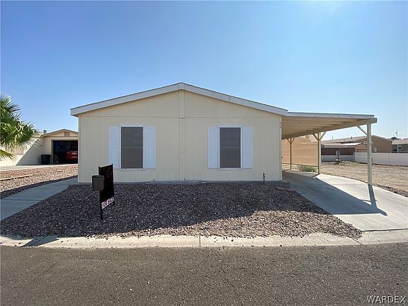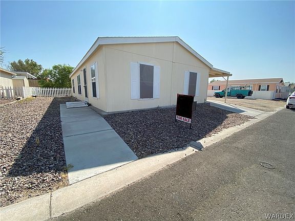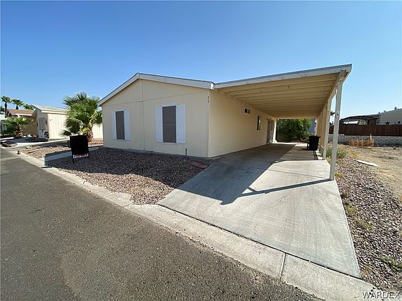 Looking for that spacious home located in a quiet gated community? Stop by the Santiago Rodeo Villas community & check out this freshly redone 1,056 sf 3 bed 2 bath split floor plan home. This home offers the features you are looking for including freshly painted inside, wood like laminate floors throughout, window treatments, solar screens, & in house laundry. The large master bedroom has you covered with its walk in closet & tub/shower combo. The open concept living/kitchen area is perfect for entertaining with its breakfast bar seating, casual dining & gas stove. Take the party outside as this home has room for that relaxing spa or future pool. If you need room for the cars & toys, the 44' deep carport is the ticket. Looking to meet the neighbors? This community is gated, has a community clubhouse, as well as large heated pool & spa area. Property is on leased land with monthly fee of $440(this fee pays for space rent, trash & sewer). Close proximity to the Colorado River, Laughlin casinos, Lake Mohave, local golf courses, shopping & restaurants. THIS PROPERTY IS A MUST HAVE - CONTACT US FOR YOUR PRIVATE SHOWING!