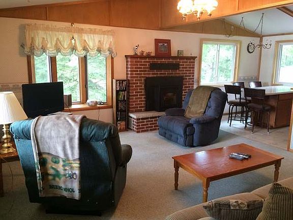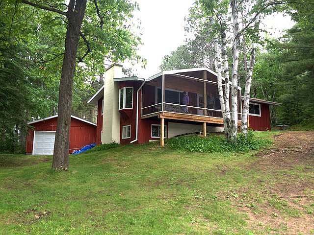 Enjoy the Nokomis Chain on your private 165' of sandy frontage. Lot is wooded and the view looks out to all nature! Large screen porch with great view of the level frontage. Newer windows, Pellet Fireplace, open living area with large breakfast bar. 3 bedroom one bath on upper level, lower level has nice family room plus large finished room with walk-in closet which could be used as another bedroom or any purpose. Garage has overhead doors on each end for terrific access to yard and the lake.