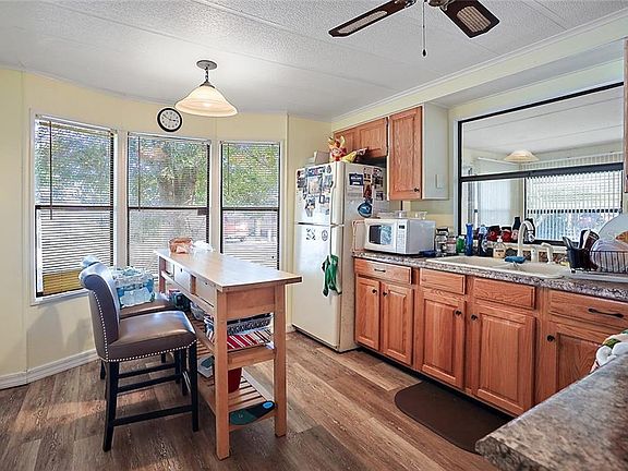 Welcome home! This spacious two bedroom, two bath manufactured home is nestled away in the quiet 55+ community of Oakridge in Leesburg. Upon entering your home you will notice a nicely updated and well kept kitchen along with an open dining area. Off of the living room is a sunlit Florida room. Walking back inside of the home and down the hall leads to a master suite that has a well lit, oversized walk in closet. Adjacent to the master suite lies a second bedroom also equipped with a walk in closet. Just outside of the home is a huge screened porch for outdoor living with an attached shed for storage and laundry. Friendly neighbors, beautiful home, heated community pool with clubhouse... What more could you ask for?! Don't miss this opportunity! Schedule a showing today!