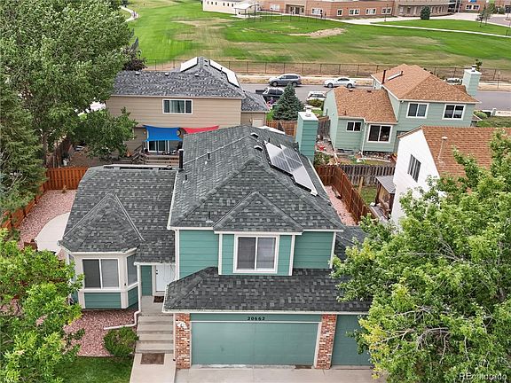 Welcome to this beautifully updated 3-bedroom, 3-bath home on a desirable corner lot in Green Valley Ranch! This spacious 2-story offers 1,485 sq ft plus an unfinished basement with full potential to add additional living space. A rare 3-car garage provides plenty of storage and parking. Inside, the home features two separate living rooms—one on the main level and a second on the lower level with a convenient doggy door leading to the backyard. The kitchen shines with granite countertops, stainless steel appliances and modern finishes. Updates throughout include new windows, new blinds, fresh interior and exterior paint, new doors, new sink faucets, and ceiling fans in every bedroom. Additional highlights: laminate flooring throughout the entire home, a refreshed deck and fence, and a brand-new roof (June 2025). Enjoy a nicely landscaped yard with mature trees and HOA-approved updates that offer the perfect space for relaxing or entertaining. Conveniently located within walking distance to the elementary school, minutes from the golf course, parks, shopping, and DIA—this move-in ready home truly has the space, upgrades, and location you’ve been waiting for!