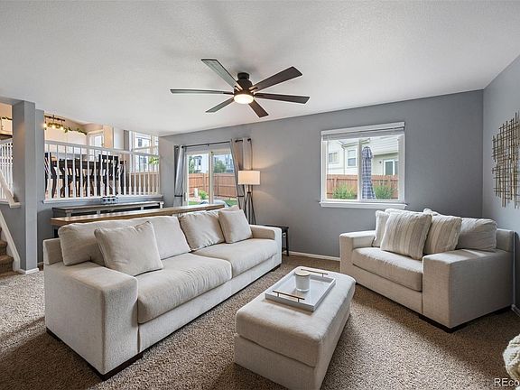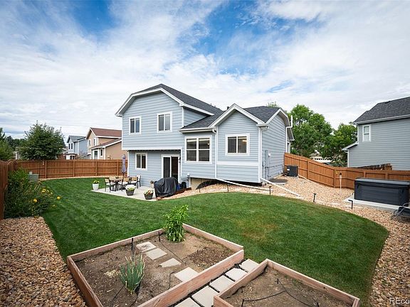 Phenomenal cul de sac location in Cherry Creek School District, close to neighborhood pool, parks, trails, shopping and dining. The minute you walk into the living room you’ll notice the abundance of natural light throughout. The kitchen is beautiful with quartz countertops, stainless appliances, pantry and eat-in dining space. Entertaining is a dream with large family room featuring a cozy gas fireplace and sliding glass door. Step into your private backyard oasis with lush green grass, and generous patio, ideal for hosting gatherings and entertaining. Just as you had hoped, there’s a hot tub to enjoy those beautiful Colorado nights. Upstairs you’ll find three bedrooms. The primary suite has a 3/4 bath with quartz countertops. The full bath in the hall also has quartz countertops. Newer flooring and paint inside and out, means no maintenance for years to come. Totally move-in ready with window coverings, washer and dryer. The basement has a fourth bedroom and half bath, laundry and gear storage. The attached two-car garage completes the package. All you have to do is unpack and start enjoying that Colorado lifestyle.