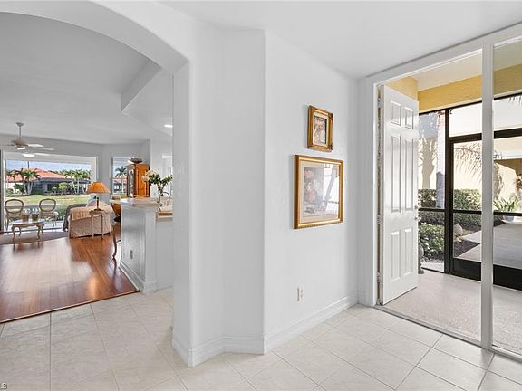 No waitlist for golf membership at this totally renovated Arnold Palmer designed 18 hole golf course! Wildcat Run Golf and Country Club is a smaller, intimate community where friends become family. There is a total of 449 residences, with a combination of single family homes, stand alone villas, attached villas and condos. For those who do not golf, as well as the golfers, there is tennis, bocce, pickle ball, cornhole toss, cards, Mahjong, book clubs and a fabulous fitness center with a full-time fitness director. The main clubhouse, grill room and pro-shop have all been renovated. Even the parking lot expansion is complete. There is a community pool for the exclusive use of owners at Cypress Cove and Wildcat Cove. Those owners all pay to maintain the pool and its parking lot. Another great place to meet your neighbors. This first floor unit with three bedrooms and two full baths has been meticulously cared for. The flooring in the main living area is engineered wood while the primary bedroom and third bedroom (den) have laminated wood flooring. The dining room chandelier and a piece of wooden art above the kitchen cabinets are not conveying with the sale of this property, but furnishings are negotiable. This unit has plexiglass sliders on the lanai giving you another 235 sq ft of living space. The screens on the lanai were replaced with picture window screens for unobstructed views down the lake. Keep in mind there are electric and manual shutters. You will love the location. A short drive to the airport, FGCU, University Shoppes, Hertz Arena, Miromar Outlets and two other major shopping venues are a short distance away. The South County Regional Library is scheduled to reopen in late 2025 after extensive renovations and that is fairly close also!!