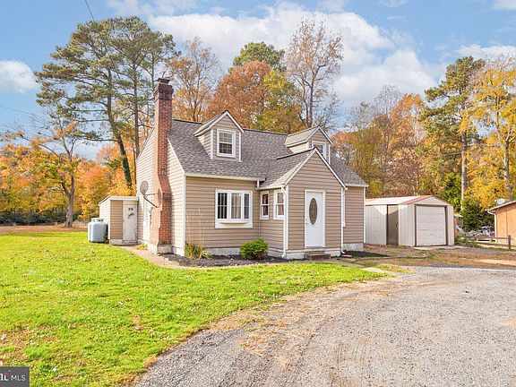 Charming Cape Cod home on a level 3/4 acre lot! Cozy spaces are plentiful in this home with a small dining room, and a small breakfast nook off the kitchen. There are two separate entryways, each with a small mudroom foyer and convenient shelving. There is a bedroom on the main level and a separate full bathroom directly adjacent to the bedroom. There are two additional bedrooms and a full bathroom upstairs. The spacious back yard provides great opportunities for gardening and outdoor recreation. Previous residents have enjoyed raising fruits and vegetables and camping out in the back yard, surrounded by tall, mature trees. The circular driveway makes convenient parking for several vehicles, and the rear yard is easily accessed from the road. There is adequate space for recreational vehicles, a shed, or whatever other accessory features you can imagine. The 14'x31' detached garage features lots of additional space for a workshop or storage. This structure was installed on a sturdy 6" concrete slab, providing a base sturdy enough for vehicle storage or workshop space for heavy-duty home projects. While the home was built in 1951, the owner has made major structural and mechanical updates to protect and preserve the property. Vinyl siding was installed by the owner, and has been well-maintained. A new well was drilled in 2010, a new 200 amp electrical panel was installed in 2010, and central A/C was installed as well. The roof was replaced in 2021. The home sits on a quiet street with minimal through traffic, and it is situated outside of the major commercial hubs of the county, but near enough to conveniently enjoy great features of the community. The property is less than 5 minutes from the entrance to Gate 3 of PAX Naval base, and less than 10 minutes from the entrance to Gate 2. The property is also less than 10 minutes from St. Mary's College of Maryland, and just under 20 minutes from Point Lookout State Park.