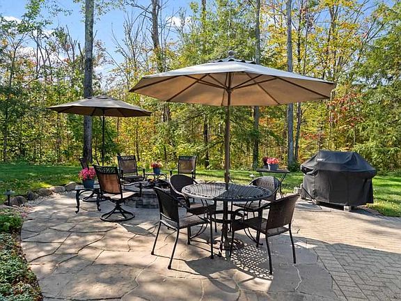 Resort poolOutdoor grillCovered outdoor entertainment spaceResidential water softenerBeautifully wooded lotHeated floorsNatural-gas fire pit