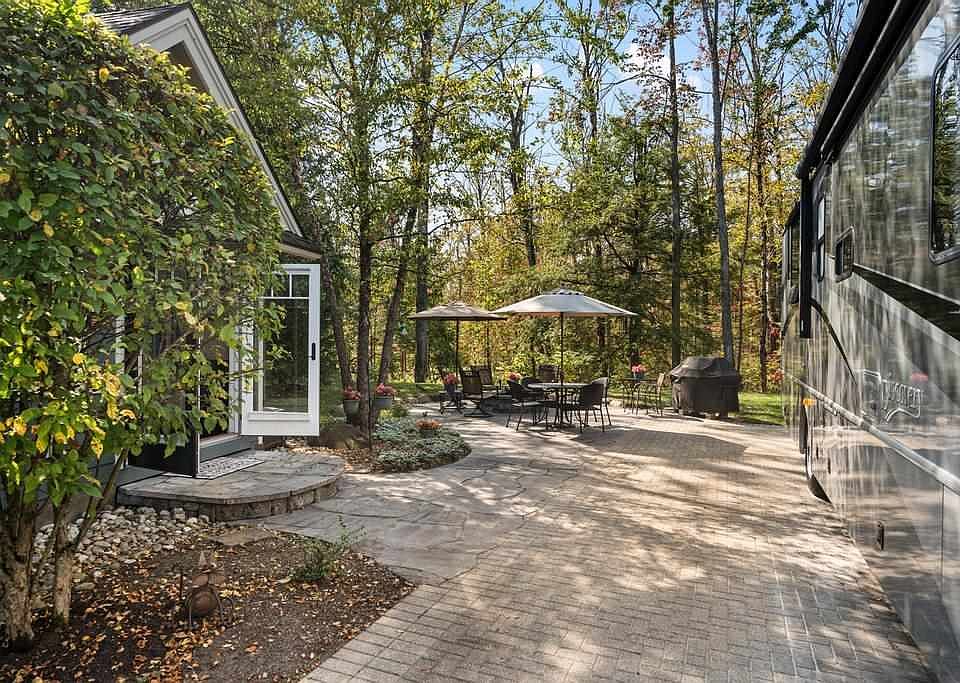 Discover the perfect Northern Michigan getaway on this beautifully wooded lot at Hearthside Grove - designed for the ultimate summer RV lifestyle and ready for year-round enjoyment. Spend your days swimming or relaxing by the resort pool, playing pickleball on the 4 resort courts, playing games in the clubhouse or mingling with neighbors. Venture off-site to enjoy the very best of northern Michigan: pristine beaches, boating & fishing, championship golf courses, bicycling, off-road trail riding and breathtaking sightseeing - all in the area's famously mild summer temperatures. Outdoor grill and patio furniture, deck storage box, bungalow furniture to inc TV, refrigerator and microwave, included in purchase price. Host friends and family around your natural-gas fire pit and fire up the natural grill for easy outdoor dining. The expansive patio is ideal for all your summer gatherings. The charming 192-sq-ft cottage style bungalow offers a queen-size hide-a-bed, full bath and a well-equipped kitchenette featuring a small refrigerator, sink, microwave and washer/dryer. Comfort is assured with a A/C heat pump mini split climate control, heated floors and an auxiliary wall heater for winter stays. A residential water softener provides soft water throughout the bungalow and coach connection. Ample storage is available in the concrete crawlspace under the entire bungalow. The loft inside of the bungalow is available for storage or additional sleeping quarters. The lot also offers potential to expand the bungalow and/or add a covered outdoor entertainment space - permitted by the 2025 Architectural Bylaws. Hearthside Grove is an exclusive Class A motorcoach resort. Coaches must be modern, RVIA-certified, at least 28 feet in length and less than 10 years old. Enjoy the perfect blend of luxury resort amenities, outdoor adventure and the natural beauty of northern Michigan - all from your private retreat at Lot 264.