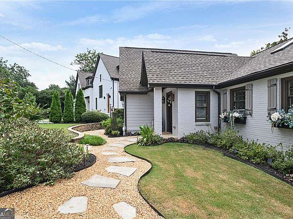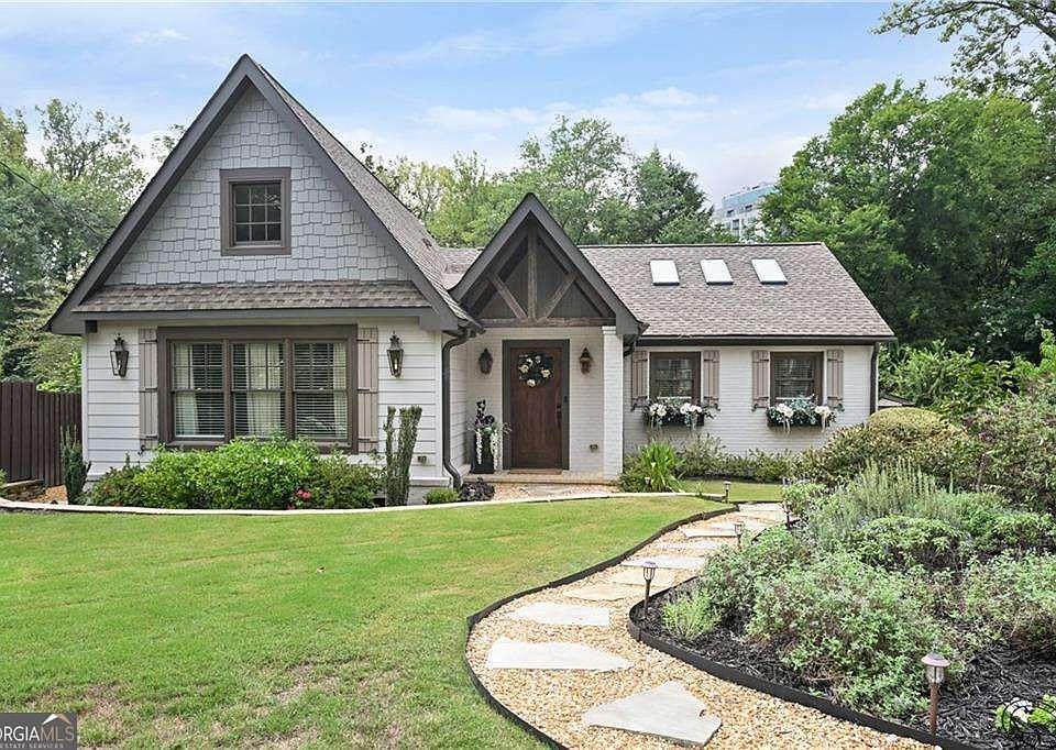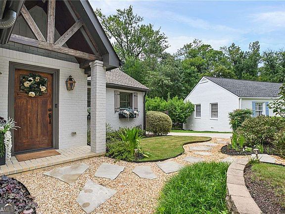 Designer Peachtree Hills retreat on nearly half an acre featuring a 2BD/2BA main home (1,688 sq ft) plus two detached, heated & cooled cottages (360 sq ft) ideal for guests, working from home, or wellness. Vaulted 20-ft ceilings, marble chef's kitchen, spa baths, hardwood flooring, multi-level Trex deck, privacy fencing, and lush botanical gardens. New AC, newer furnace and roof, tankless water heater, EV parking, architectural lighting, and other modern upgrades. Moments to Peachtree Battle, parks and trails, transit, fine dining, and the upcoming BeltLine trail. Beyond the walls, the grounds unfold into a four-season botanical garden. Flagstone paths lead past camellias, magnolias, Japanese maples, and rare lilies to meditation areas, a butterfly sanctuary, and the "Turtle Path" beneath a gingko tree. A 750 sq. ft. multi-level Trex deck with covered lounge, cafe lighting, and multiple zones creates the perfect setting for gatherings under the stars. Adding to the charm are two custom garden structures: Three Hares Cottage, a professionally soundproofed studio ideal for recording, wellness, or work, and Haven Chalet, a vaulted retreat with exposed beams, built-in workspace, and a private Trex patio. Together, they expand both functionality and serenity. With a newer roof, tankless water heater, Nest thermostat, whole-house surge protection, insulated windows, and EV-ready parking, this property blends beauty with peace of mind. Moments from fine dining, parks, fitness, private and public schools and the soon-to-open Beltline trail, this home offers the rare balance of privacy and connection-your own garden sanctuary in the heart of the city.