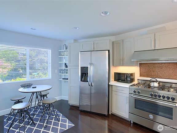 Incredible West Queen Anne townhouse with stunning views of Elliott Bay and Interbay Golf Course from your private rooftop deck and living room. This Gem is spacious, and updated home is filled with natural light, offering 2 bedrooms and 2.5 baths, updated hardwood floors, a chef's kitchen, A/C., fenced private yard. The property includes a garage plus one Additional reserved parking space and is ideally situated for easy biking or transit to downtown Seattle and SLU. This home is just a stroll away from Wholefoods, restaurants, Kerry Park, and Discovery Park. NO HOA and NO rental cap, great investment property & Airbnb Short-term rental!