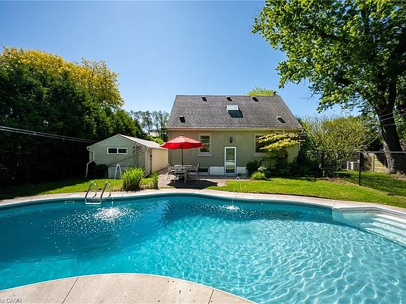 Downtown Burlington Living At It's Best! Charming brick 4 Bed Home situated on a family friendly quiet dead-end Street with access to Optimist Park. 1.5-storey home with an amazing in-ground salt water pool nestled in the sought after Central area on a huge 75'x 100' lot. Perfect opportunity for a first time buyer, growing family or a down sizer. This delightful home is bathed in natural light, featuring an open concept eat-in kitchen and living room with a large window that invites the outdoors in. 2 Bedrooms on the main floor share a 4-piece bathroom. An additional 2 bedrooms on the second floor share a 3-piece bathroom. The spacious Family Room in the basement has a gas fireplace, new carpet (2025), and a large finished storage space. The backyard is a serene retreat, complete with mature trees and a private in-ground salt water pool with fountains—perfect for entertaining and unwinding. Walk to everything- downtown, lake, go-train, shopping, schools, and restaurants. The main floor and 2nd floors have been freshly painted, all you need to do is move in!