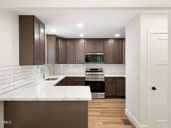 Beautifully remodeled townhome in the desirable Continental Country Club area, just a short distance to Oakmont restaurant! This 3-bedroom, 2-bathroom home features the primary suite on the main level and has been completely updated from top to bottom. Upgrades include new wood flooring, carpet, baseboards, quartz countertops, cabinets, doors, fixtures, fans, and fresh interior paint. The kitchen shines with new appliances and backsplash, while the bathrooms feature new tile showers, fixtures, and new bathtub. Enjoy modern comfort with brand-new AC and ductwork. Additional highlights include a stunning stone fireplace, freshly painted deck to enjoy the Flagstaff outdoors and views, new security screen door, and more. Move-in ready with every detail thoughtfully updated— don't miss this rare opportunity in one of Flagstaff's most sought-after locations!
