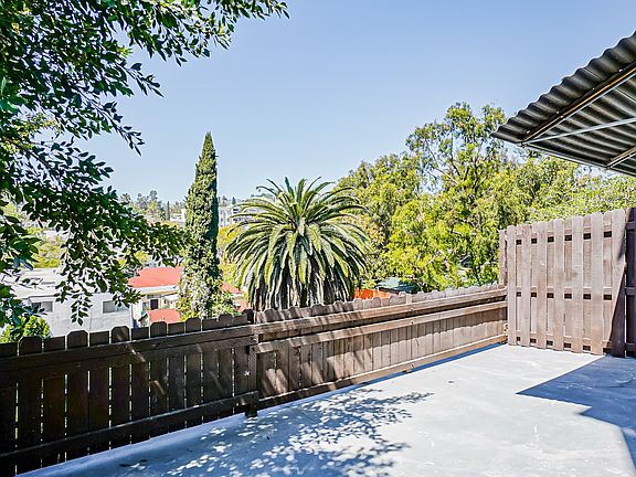 Large private patioShaker-style cabinetsQuartz countersCeiling fanStainless steel appliancesHollywood hills viewsLaminate flooring