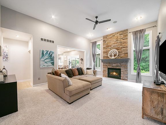 Welcome to this wonderful 4 bedroom, 3 ½ bath home in the Grandville school district. The home welcomes you to a spacious 2 story living room featuring a stone gas log fireplace and large windows. To the front of the house a large, semi-formal dining area is perfect for entertaining. The kitchen features Granite countertops, stainless steel appliances, walk-in pantry, center island, and an eating area which opens up to the 4 seasons room with sliders out to the deck. Off the kitchen is access to the main floor laundry, ½ bath and the garage with an extra workshop space! Rounding out the main floor is the Primary bedroom ensuite. The master bath features jacuzzi tub, separate shower, dual sinks and a walk-in closet. Upstairs are 2 very large bedrooms and a full bath. The walkout lower level is huge featuring a wet bar, another full bath, bedroom, and home office. The back tree line and large fenced yard offers privacy and space as you relax from the large deck or from the private patio in the hot tub. Need more space, the neighborhood connects to Gezon park and its splash pad for these hot summer days via a short trail at the end of the street. Ideal location is just minutes to Rivertown mall, M-6 and Metro Health and less than 15 minutes to downtown GR. Offers due at noon 7/16/24.