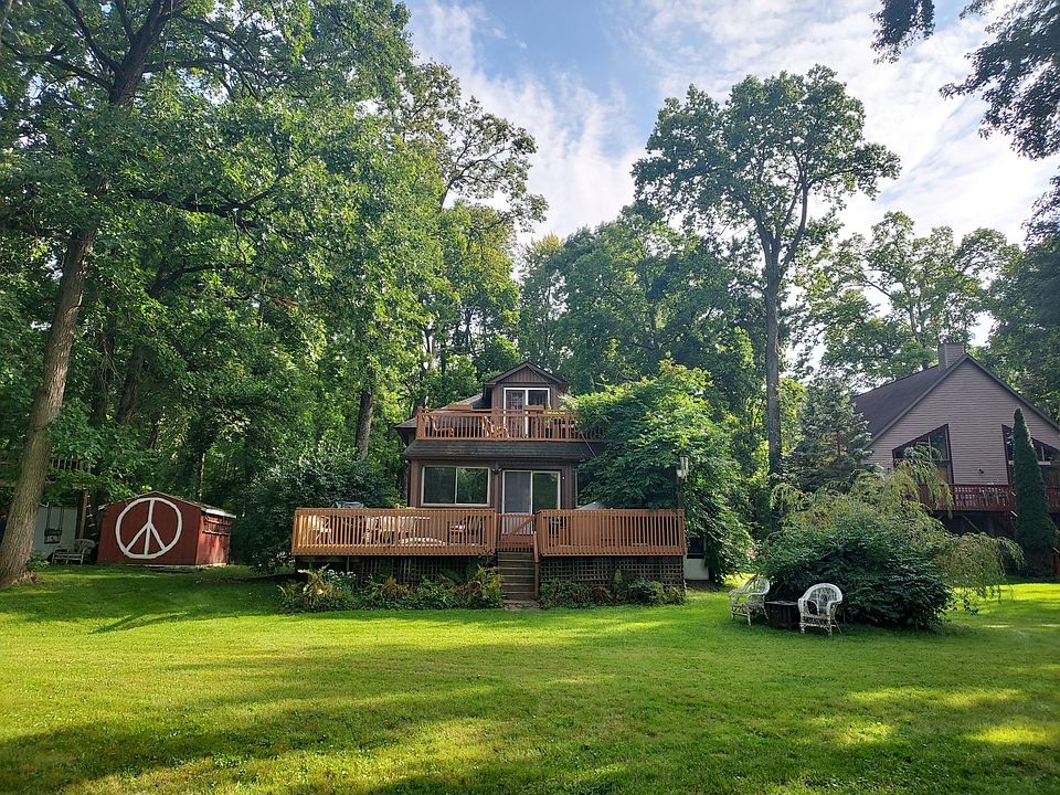 Near the end of a quiet, sparsely populated cul-de-sac in a forested neighborhood, you will find this home situated behind it's 165 ft of Grand River frontage. Open floor concept with high ceilings throughout the main level and a first floor library which can easily be turned into a third bedroom. The large second floor master bedroom features a walk-in closet, sofa nook, and a custom headboard for up to a king size bed. French doors open to a private second story deck overlooking the river and yard. Outside you will find a large chicken coop which features a run which encircles a vegetable garden. Home is in the Northview School District just minutes from the Plainfield corridor with shopping and access to Interstate 96. Buyer and Buyers agent to verify all details.