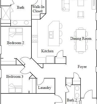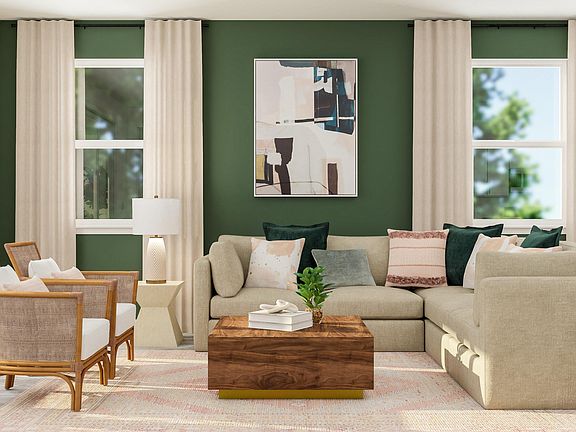 A spacious foyer welcomes residents into this single-story home, seamlessly connecting to the open floorplan shared between the Great Room, kitchen and dining room. A hall off the foyer leads to three secondary bedrooms ideal for younger family members or overnight guests, while the owner's suite is tucked off the Great Room.