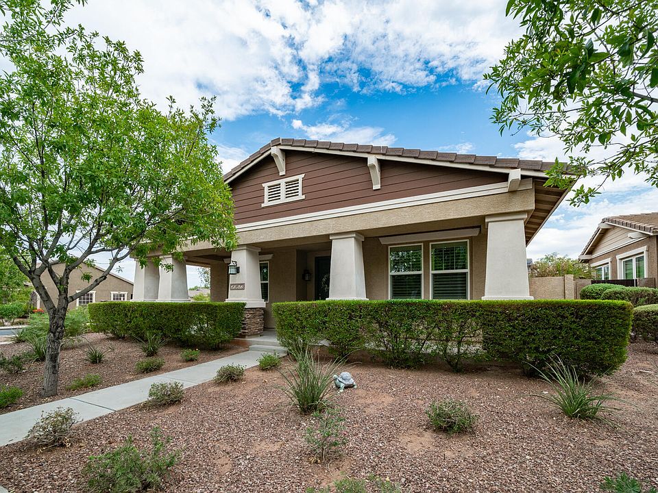 Gorgeous, premium corner lot in highly coveted Verrado Community! This is an absolute gem, almost $100K in upgrades! 2 Bedroom + den, and an office that can easily be converted to 3rd bedroom, 2 bathrooms, Open floorplan kitchen & living room, Craftsman elevation with a wraparound porch & alley loaded extended length 2-car garage. Kitchen features 42'' upgraded cabinets, designer title backsplash, breakfast bar, SS appliances, dual ovens, gas cook top & walk-in pantry. Crown molding & ceiling fans throughout. High-quality shutters throughout. Custom stonework fireplace & entertainment center in Living Room, complete with surround sound speakers. Primary bedroom features a large walk-in closet, the on-suite bathroom features separate tub/shower & dual sinks. Backyard is low maintenance & perfect for entertaining, featuring a gas fire pit & gas BBQ hookup. Views of tree lined streets from almost every room & directly across from a community greenbelt area. Prime location close to all Verrado has to offer - Shopping, Restaurants, Golf Courses, Schools & Verrado Association Community Areas such as, Fitness Center, Heated Pools, Spas, Splashpads, Playgrounds, Greenbelts, Neighborhood Parks, Hiking Trails & so much more.