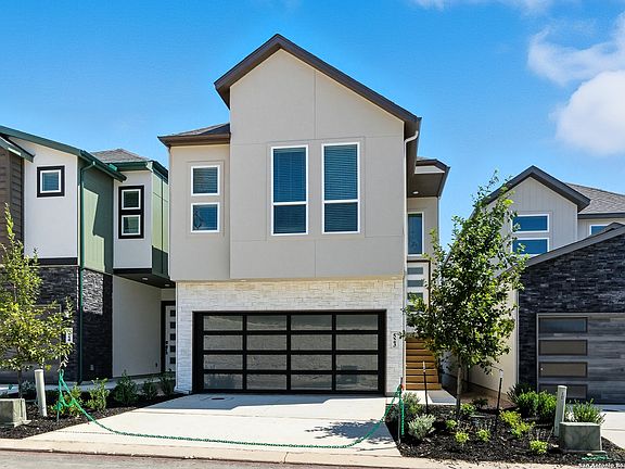 Move in Ready! This stunning modern floor plan is designed to impress, featuring an open-concept layout that floods the space with natural light from expansive picture windows throughout the main living areas. Exterior screams luxury with the full light garage door. The chef-inspired kitchen is a true highlight, offering gas cooking and sleek upper box cabinets, perfect for both functionality and style. The luxurious primary bathroom includes a skylight, while the spacious owner's closet is thoughtfully designed with windows to create a bright and airy feel. Zoned for the highly coveted Reagan High School, this home is ideally located for ultimate convenience. The community offers a dog park, and the home is filled with premium features and upgrades, making it the perfect choice for modern living.