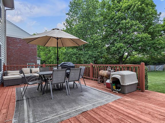 Nestled in the desirable Beaumont neighborhood, this two-story home features 3 bedrooms, 3.5 baths, and a basement, blending comfort and style seamlessly. The open first floor includes a kitchen that is a chef's dream, offering abundant cabinets, a center island with seating, sleek black stainless steel appliances, a double pantry, and elegant pendant lights. It flows effortlessly into the formal dining and living areas, perfect for entertaining. The master suite boasts three large windows, a luxurious bath with a whirlpool tub, separate shower, and a spacious walk-in closet. Two additional bedrooms, each with its own walk-in closet, provide ample space, along with a generous loft. The finished basement enhances versatility with a large family/rec room, full bath, and unfinished storage room with built-in shelving. Ready for move-in, the home also features a custom deck overlooking a peaceful walking trail. Experience the Beaumont lifestyle and schedule your viewing today. * Buyer to verify finished area square footage.