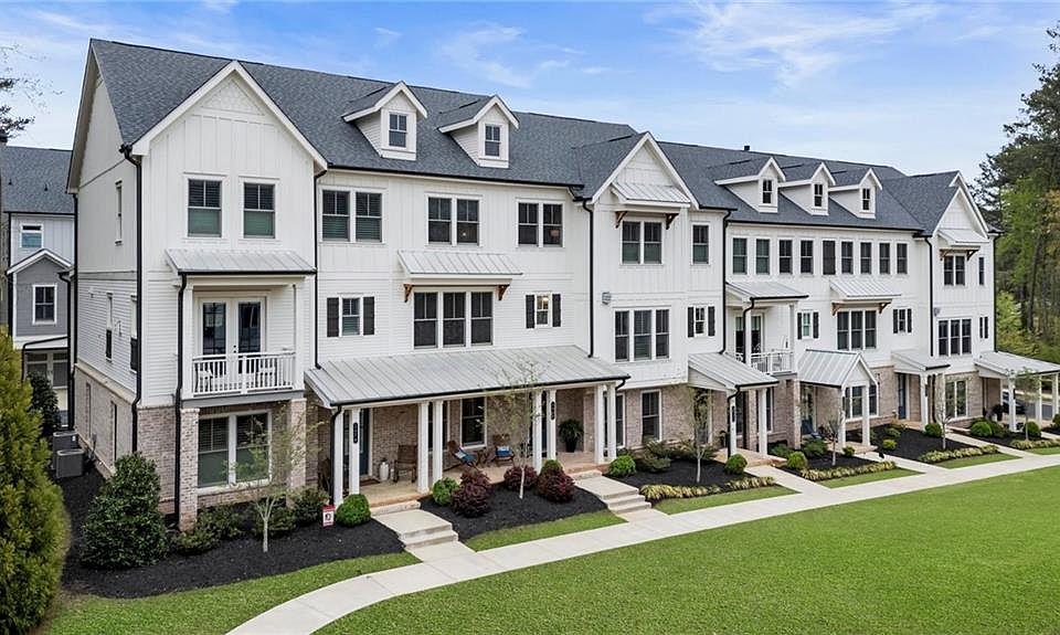Luxurious Townhome Living in Downtown Crabapple! Built in 2021, this beautifully crafted townhome is located in the heart of Milton— consistently ranked as one of Georgia’s most desirable places to live. Half a mile from Downtown Crabapple, you’ll enjoy walkable access to fine dining, boutique shopping, and lively entertainment. Zoned for the top-rated Milton High School district, this home also offers exceptional educational opportunities. On the entry-level, relax on the covered front porch with peaceful views of the greenspace and welcome guests through a stylish, inviting foyer. This floor also features a private guest suite with an en-suite bath ideal for visitors or a dedicated home office. The oversized two-car garage comfortably fits two SUVs and has additional storage space. The open-concept main level is perfect for both entertaining and everyday living. Bathed in natural light, it features 10-foot ceilings and rich hardwood floors. The gourmet kitchen is a chef’s dream, complete with stainless steel appliances, custom cabinetry, a large island with seating, and a flexible space ideal for a butler’s pantry or home office. The kitchen flows seamlessly into the open-concept dining area and the family room, featuring a dramatic floor-to-ceiling fireplace, and opens to a private deck perfect for grilling and outdoor relaxation. The upper level includes a luxurious primary suite featuring a tray ceiling, a spa-like bathroom with a glass-enclosed shower, and a large walk-in closet. Two additional bedrooms, a guest bathroom, and a conveniently located laundry room complete this floor. Meticulously maintained and thoughtfully designed, this home offers a rare combination of comfort, convenience, and style. With award-winning schools and easy access to GA-400, it’s the perfect place to call home.
