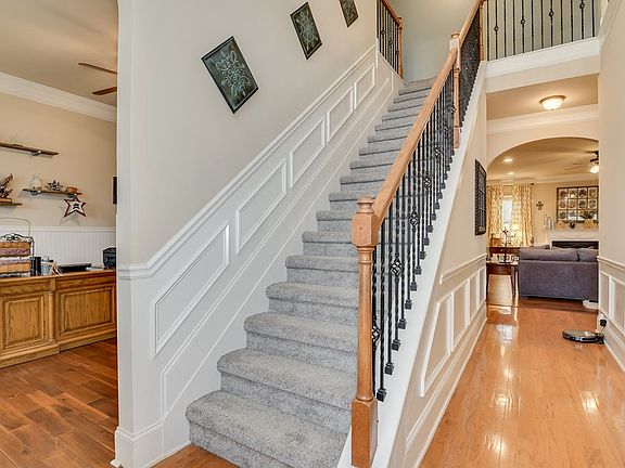 Beautiful Grovetown home w/lots of upgrades on 1/2 acre lot backs up to greenspace. Pulling up feel right at home, w/long driveway & side load garage. Enter the 2 story foyer, notice the crown molding, wainscoting & all the gleaming hardwoods throughout the main floor. Coffered ceilings adorn formal dining room, & notice the formal living/flex room perfect for at home office. Oversized Great room w/wood burning fireplace is open via arches to large kitchen & breakfast room. Kitchen has hardwood cabinets, granite counters, desk, tiled backsplash & SS appliances. 1 guest bed & full bath downstairs convenient for company/family. Master suite is to die for. Separate sitting room w/fireplace, cathedral ceiling, chair rail. Dual walk in closets, separate vanities, large garden soaking tub & separate shower is heaven. Large loft area is fantastic, 3 secondary bedrooms & Laundry also located up. Unfinished basement has basic electric & plumbing ready for you to enjoy or finish. Lg deck