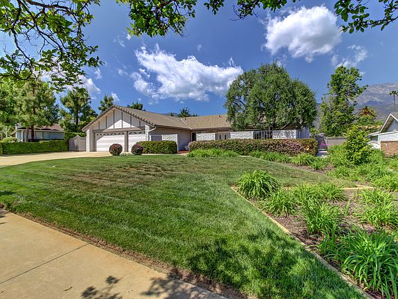 This 2,259 sqft, one story home could be all yours! Walk in through the custom front door with decorative glass side panels, and right into the beautifully redone living room with smooth cathedral ceilings, a custom fireplace with refaced slate and Carrara marble mantle, and custom drape panels with custom rods. In the dining room and kitchen you'll find French doors, a stainless steel refrigerator, granite countertops, and custom European steamed beech cabinets. The master bedroom has French doors and double master closets with built in drawers and shelves. In the bathrooms there is new shower tiles, as well as granite countertops. The laundry room has it's own utility sink and leads to the 3 car garage with a workshop. Recessed lighting, European steamed beech built-ins, porcelain title flooring, crown molding, tall baseboards, and double paned windows thoughout, with freeway glass on all South-facing windows. Outside is a large patio, rose garden, fruit, olive, and avocado trees, planter boxes, automatic sprinklers, and a large custom 8'X14' shed on a slab. All on a half-acre lot with RV parking, it doesn't get any better than this!