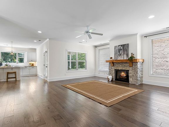 SOUGHT AFTER NEIGHBORHOOD! This move-in ready 4BR/3BA home w/a wrapped front porch welcomes you into a true foyer & open floor plan where the stone fireplace, dining room & chef’s kitchen create a perfect place for entertaining! Cook like a pro w/a gas range, designer hood, quartz counter tops, walk-in pantry & an oversized island - all while overlooking nature from the HUGE kitchen windows! Retreat to the MST suite w/dual vanities, soaking tub, lg shower & divided closet, while a main lvl guest room & full BA offers flexibility. Upstairs, a spacious den, has so much room for movie watching, exercising & playing! 2 more BDs & a full BA provide plenty of space for kids & guests. Watch the game on the covered patio or sit by the fire pit wrapped by stone seating! Extras include: a mudroom drop zone, lg laundry & 2-car garage. All this in a vibrant community with fishing, kayaking, pickleball, pool, clubhouse, fitness center, wiffle ball field, playground & community garden!
