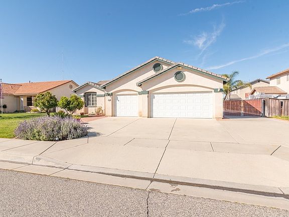DRAMATIC MOUNTAIN VIEWS WITH LOW PROPERTY TAXES!! This wonderful east-valley home is an absolute gem! Located on the eastern edge of San Jacinto city limits, you'll find less traffic. You're just a stone's throw from the vast expanse of the Soboba Indian Reservation reaching all the way to the foothills. As you enter from the front door, you walk into a large formal combo living/dining room that is light and bright. Take a look at the expanse of lovely wood laminate flooring. Adjacent is the spacious kitchen featuring stone countertops, breakfast nook, and deep pantry. You'll love the steel & black range, refrigerator and dishwasher. Heading down the hall, you'll find two guest bedrooms and bathroom that are central to the home. Toward the back you find the roomy primary bedroom. Just off the side, there is ample room in the primary bath and walk in closet. Out the sliding glass door, you'll find that the back yard is spacious with room for several seating areas. There is plenty of room for grilling and entertaining. On the side of the property you have a concrete side yard & gate that is perfect for a large RV. Additionally, you'll have plenty of room in your huge three-car garage. Additional features include kitchen tile, security screen door, newer water heater, and exterior security cameras. Located on the desirable east side of the valley, this home is a commuter's dream by being conveniently located near Ramona Expy for direct access to freeways, Soboba Casino Resort, and beyond. Don't let this beautiful home pass you by!