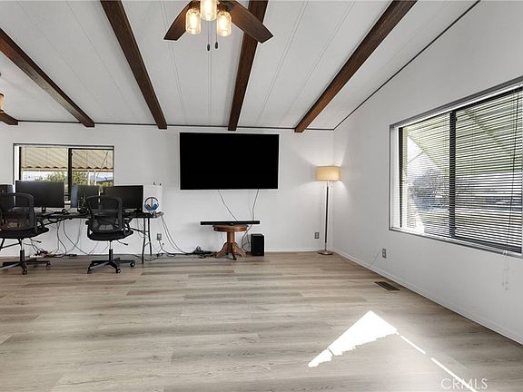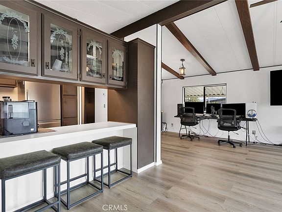 Corner Lot Stunner with Lake views! Welcome to this beautifully remodeled desert oasis in the heart of Apple Valley. This charming two-bedroom, two-bathroom home spans 1,248 square feet and has been thoughtfully updated throughout to offer modern comfort and style. Step inside to discover new flooring, fresh paint, and gleaming stainless steel appliances in the kitchen, complete with a convenient eat-in bar. The dining area features a built-in china cabinet, adding both character and functionality. Both bathrooms have been enhanced with vapor flooring barriers, new toilets, and contemporary fixtures. The spacious laundry room includes a dedicated desk area and generous linen storage. Comfort is assured year-round with central air and heating, supplemented by an evaporative cooler. The home's exterior is equally impressive, featuring fresh paint and a covered patio surrounded by established shrubs. Situated on a corner lot, the property includes a carport and a large storage shed for all your outdoor equipment. This home is part of a vibrant community offering extensive amenities including three swimming pools, spas, billiards, tennis courts, and a park. Enjoy outdoor barbecues or try your luck at lake fishing - all within walking distance. The location provides easy access to local attractions, including Brewster Park and the Lewis Center for Educational Research.