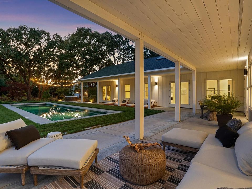 Just minutes from Sonoma Plaza, this private modern farmhouse blends Wine Country luxury with serene, bucolic surroundings. Beyond your gated entry, a tree-lined drive welcomes you home to an estate designed for both relaxation and entertaining. Inside, soaring ceilings and exceptional craftsmanship create a warm, open flow. The great room features spacious living and dining areas anchored by a fireplace, while the chef's kitchen with a large island makes cooking and gathering effortless. Natural light pours in through expansive windows, framing views of patios, pool, gardens, and outdoor entertaining spaces. Three en-suite bedrooms provide spacious retreats with ample closets. A bonus room adds versatilityideal as a fourth bedroom, office, gym, or creative studio. The septic system is 4 bedroom so you have the ability to have an additional bedroom. With world-class wineries, restaurants, and shops just around the corner, this Eastside Sonoma gem offers the rare chance to enjoy it allprivacy, luxury, and proximity to the best of Wine Country.