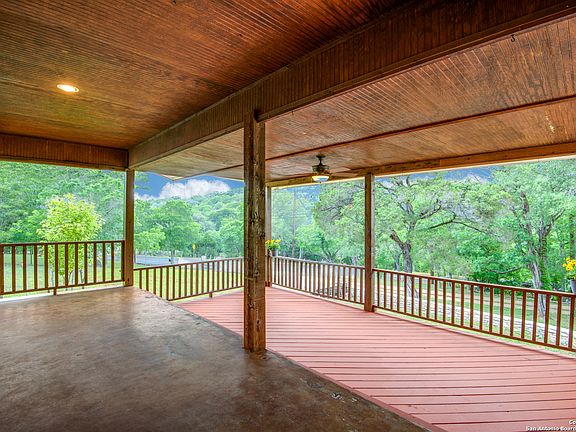 Unique Scenic Loop property set on a gorgeous tree studded 2.29 acres. Main home features rock ext & huge front cov'd patio w/bluff view. Detached cottage on property perfect for mom-in-law or office/studio. Open concept living in main home plus, granite kitchen w/lots of cabs, s/s appls & sep.dining. Dramatic rock FP completes family rm looking out to TX Hill Country. Mstr ste w/wood flr & bath w/sep tub/shwr. Versatile rm down perfect for office/studio. Cottage equipped w/kitchen & bath. Rare opportunity!