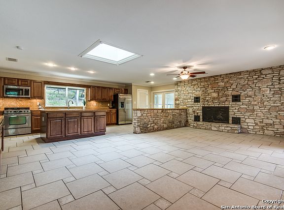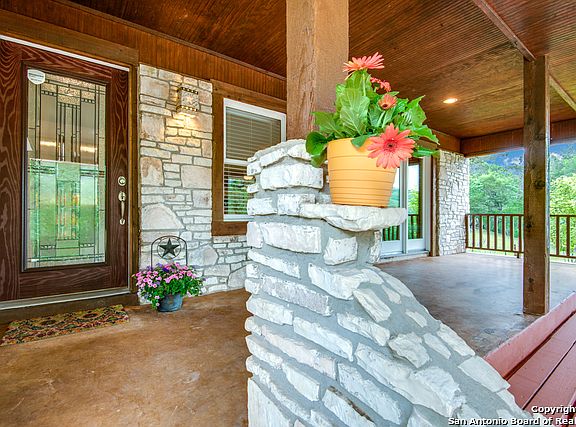 Unique Scenic Loop property set on a gorgeous tree studded 2.29 acres. Main home features rock ext & huge front cov'd patio w/bluff view. Detached cottage on property perfect for mom-in-law or office/studio. Open concept living in main home plus, granite kitchen w/lots of cabs, s/s appls & sep.dining. Dramatic rock FP completes family rm looking out to TX Hill Country. Mstr ste w/wood flr & bath w/sep tub/shwr. Versatile rm down perfect for office/studio. Cottage equipped w/kitchen & bath. Rare opportunity!