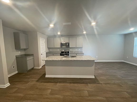 2022 build in Grove Parc. Open and spacious 4 bedroom 2 bath Booth floorplan. Luxury vinyl flooring throughout. NO CARPET! Kitchen features stainless steel appliances, large walk-in pantry, and island overlooking the living room. Granite counter tops in kitchen and baths. Primary bath features walk in closet, garden tub, stand-alone 5 ft. shower, private water closet, and a double vanity. Covered back patio. Low yard maintenance. Smart Home house. Pets allowed with approval from owner and $300 refundable pet deposit.