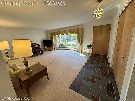 Sprawling ranch on double lot with lake privileges on all sports Long Lake. Newer windows, hardwood floors throughout living area and bedroom, under the existing carpet. All appliances included in kitchen with snack bar including large nook area. Neutral colors throughout. Cozy baseboard heat plus Central air conditioning. One and a half large bathrooms, cove ceilings throughout, natural fireplace in large family room with door leading to outdoor patio. Large great room featuring coved ceiling and an elegant 12' bowed window. Beautiful fenced back yard with perennial gardens including a large Japanese Maple tree. Full finished basement with lots of storage. 2.5 car garage with insulated garage door. Covered large front porch. Walk to town with plenty of shopping, golfing and restaurants. Great family neighborhood with award winning Walled Lake schools. Quick move in home!