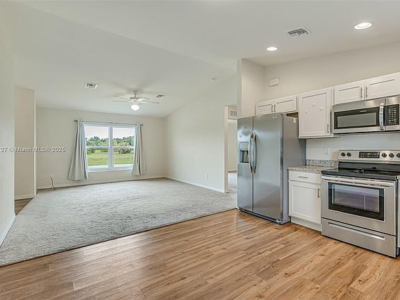 RENT this CHARMING 3-bed, 2-bath Home located at 2069 Detroit Dr. LaBelle, Florida -just minutes from SR-80, Walmart, schools and more! This home is designed with comfort, style and functionality in mind, it features open floor plan kitchen, sleek white cabinets, SS appliances, granite countertops, primary bedroom with en-suite bathroom and walking closets, carpet & laminate flooring, a laundry room INSIDE HOME with washer & dryer, and a 1-car garage. Imagine yourself living in this home. Enjoy privacy and well designed home!! Only First month + Security deposit to qualified tenants. Don't miss out contact us today for your private tour! NO ASSOCIATION FAST RESPONSE :)