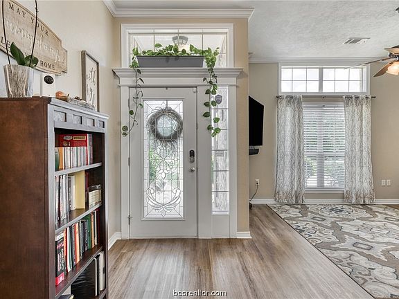 Welcome Home! Check out this gorgeous 4/2 in the highly desirable Castlegate subdivision with WATER VIEW. Walk through the front door and be greeted by stylish luxury vinyl plank flooring, a formal living room and dining room, ideal for entertaining. At the center of the home you'll find the spacious kitchen overlooking the breakfast area and living room. Kitchen is equipped with a brand new built-in microwave, oven, cooktop, dishwasher and oversized eating bar. Living room is light and airy with beautiful natural light, built-ins and a cozy fireplace. Elope to the master suite and find a walk-in closet sure to impress all of the fashionistas of the world. Master bathroom has double vanities and a newly structured "party shower," with seating and all the room you could ask for! All 3 secondary bedrooms are roomy, with ample closet space. Retreat to the flagstone back patio where you'll find scenic water views, and an 8x10 Tough shed wired for 20 amps. Bring your pups because this home also has you set with an industrial dog run. This home is just steps away from the sidewalk leading to Forest Ridge Elementary, minutes from HEB, restaurants and hospitals. Ask for a full list of owner upgrades-- I promise you'll want to see for yourself just how much this home has to offer!