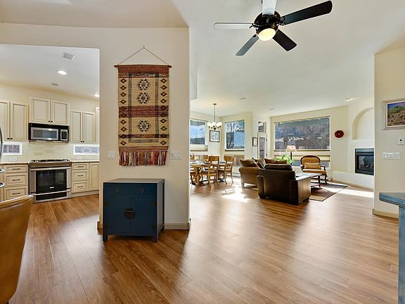 Welcome to your dream home in The Seasons neighborhood of the picturesque Redlands area in Grand Junction, CO! This beautiful 3-bed, 2-bath residence offers a perfect blend of comfort, style, and breathtaking views of the Colorado National Monument. As you step inside, you are greeted by an open living space featuring high ceilings and an abundance of natural light. The cozy gas fireplace sets the mood, creating a warm and inviting atmosphere. The dining area seamlessly connects to the rest of the living space, and a breakfast bar is an additional convenience in the beautifully updated kitchen. A flex space adds versatility to the layout, with the ability to serve as a play area, formal dining room, office space, sitting area, or any other option to meet your needs. The primary suite is a sanctuary of openness and airiness, with a large walk-in closet and a 5-piece en-suite bath. The additional two rooms are generously sized and share a full bath in the hall, with one room providing convenient access to the covered side patio. Step outside onto the open back patio, where you'll find ample space for entertaining, grilling, and soaking in the panoramic views under the red cliffs of the Monument. The surroundings offer a wealth of outdoor activities, including hiking, biking, and climbing. Golf enthusiasts will appreciate the proximity to the Tiara Rado Golf Course just up the road. Convenience is key, with schools, parks, shopping, and the charming Two Rivers Winery nearby. Plus, it's just a short drive to Grand Junction or Fruita for a variety of entertainment options. Whether you seek adventure in the great outdoors or prefer a relaxing evening at home, this property caters to all your lifestyle needs. Don't miss the opportunity to make this incredible home your own and experience the best of Western Colorado living!