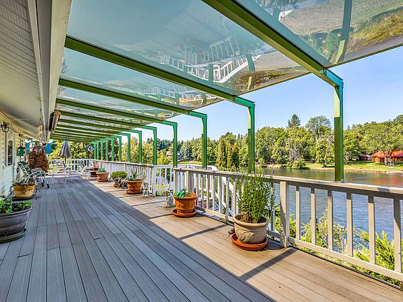 Welcome to your dream home on the river! This stunning property boasts breathtaking river views and sits right on the water with water rights included. Enjoy the serenity of 1.67 flat acres, complemented by a charming 2-bedroom, 2 and a half bathrooms home featuring vaulted ceilings and an open floorplan, spanning 1,850 sq ft of pure comfort. Embrace the great outdoors from your huge rear deck, perfect for entertaining. Additional highlights include a spacious 4-car garage and an RV shop, ensuring ample storage space for all your toys. The daylight basement offers versatility and potential for expansion. Don't miss the chance to make this riverside oasis yours!