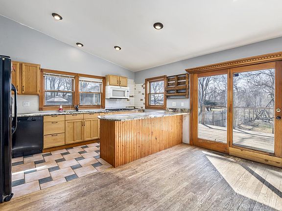 Perfect starter home with some a little TLC! 2 nice size bedrooms and a bath with Jacuzzi tub and stand up shower. Large kitchen with island and granite. Also large dining area. Nice size family room with hardwood floors. Full basement with exterior access. 18x14 deck leading to large fully fenced in back yard. 30x26 concrete pad perfect for a garage. Furnace is 1 year old. Roof and siding are about 8 years old. New well pump 4 years ago.
