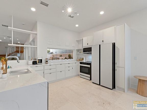 Introducing Wabi-Sabi by ENSO Habitats—a 3,744-sqft 2025 new build on South Padre Island that celebrates the beauty of simplicity and craft. Inspired by the Wabi-Sabi ethos and blending Japandi warmth with Mediterranean ease, this design-driven residence offers 6 bedrooms and 5 full baths across airy, sun-filled interiors. Highlights include limestone flooring, 1012-ft picture windows, a modern floating stair, micro-cement exterior, Sherwin-Williams Emerald ultra-flat interior finishes, custom maple cabinetry, Delta fixtures, and high-end appliances. Outdoor living spans a side patio for grilling and a back patio with an ozone-sanitized pool. Enjoy rooftop level gatherings with views of the Laguna Madre. Thoughtful systems include Philips circadian smart lighting, whole-home air filtration, reverse-osmosis water, ground-level earthing, and certified Eco-friendly, low-tox materials. Prime mid-island location near beach and bay—request the full features sheet.