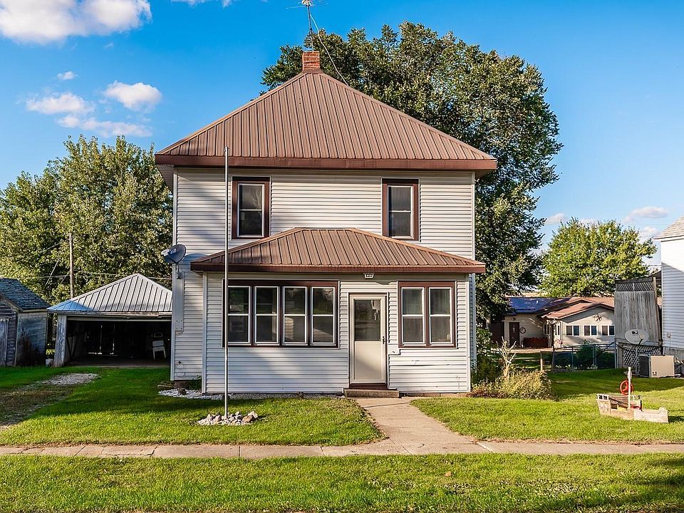 Affordable 4 bedroom, 1 1/2 bath home with maintenance free exterior with a metal roof and permanent siding and a 1 1/2 stall garage!!! Walk into a huge foyer with open staircase, large living room, formal dining, a country kitchen and 1/2 bath all on the main level. Upstairs you have 4 nice bedrooms and full bath. Call today for a private showing and put the finishing touches and make this house your home!