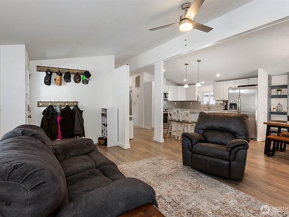 [ OPPORTUNITY AWAITS ] Perfect for a first-time buyer or downsizer, this wonderfully maintained 1-story home has so much to offer. Enter from an entertainer's dream covered front deck to the open-concept living/kitchen/dining room with vaulted ceilings. 2020 updates include flooring, kitchen cabinets & counters, paint & electrical panel, heat pump for both heating & air conditioning, plus H20 heater in '21. The detached 811 sqft 2-car tandem garage also has an extra 330 sqft bonus space w/pellet stove & covered storage behind. The fully fenced low-maintenance backyard has a gazebo, garden beds & storage shed. Tons of off-street parking & RV hookups on north side of the house. Don't miss this one!