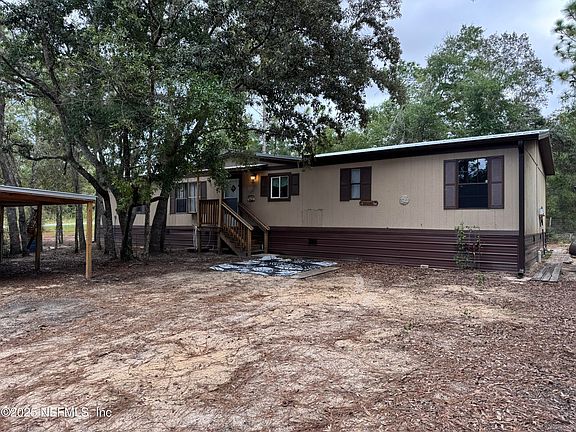 Spacious and updated doublewide on nearly one acre with paved road frontage! Offering almost 1,800 sq ft of living space, this home features a bright kitchen with newer cabinets and countertops that opens to a generous living area—perfect for family or entertaining. Updates include newer flooring and roof, plus two window units (one with heat/air, one with air only) for comfort. Appliances convey, including washer, dryer, and freezer, along with the antenna for local TV stations and Starlink internet equipment. Additional perks include underground electric service and connection to Town of Interlachen water. An excellent opportunity to own a roomy home on a large lot at an affordable price!