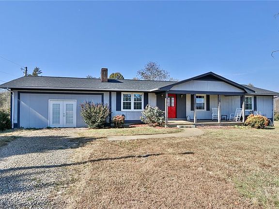 OFFER DEADLINE IS TODAY, 11/10 @ 5PM. Come and see this cozy 3BR/2BA ranch style that sits on 1.5 acres of land. Enjoy the gorgeous rocking chair front porch in a country setting, living room with fireplace, kitchen with walk-in pantry, and lots of cabinet space for ample storage, a sunroom, and an extra flex room off the kitchen for home office, playroom, or for entertainment. Lots of windows for natural light. Parking in gravel drive and 2 car detached garage with concrete pad for extra parking space. Partially fenced backyard. Possibilities are endless on this beautiful property. Schedule your showings NOW!! (SEE AGENT ONLY REMARKS).