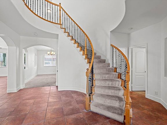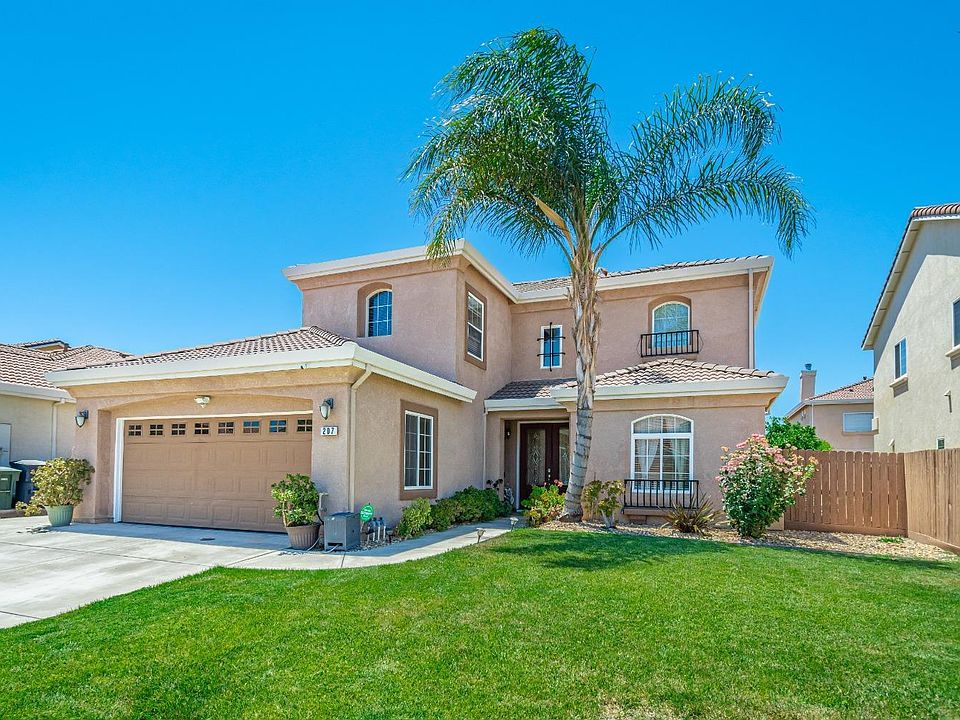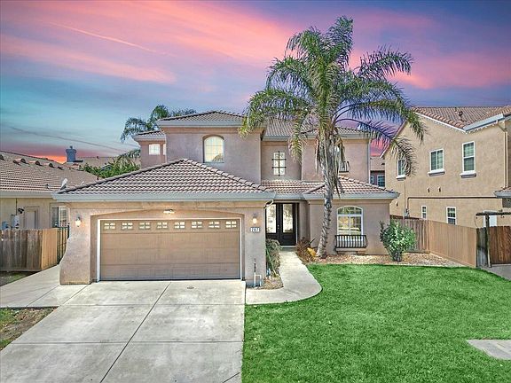 Step inside your recently refreshed EAST FACING Mediterranean inspired home which includes 5 BEDROOMS & 3 BATHROOMS with a FULL BED & BATH DOWNSTAIRS. One of the LARGEST floorplans in the neighborhood with over 3300 SQFT! This home has been well cared for, and meticulously maintained throughout. As you enter through the double doors, you'll notice the custom tiled entry way and HIGH CEILINGS. This home is perfect for a family of any size & MULTIGENERATIONAL LIVING. Downstairs you will find your spacious chef's kitchen which boasts GRANITE COUNTERS, island with sink, stainless steel appliances, and plenty of NATURAL LIGHT. The MAIN LEVEL also includes the laundry room, family room, and a separate living room with an extra office/guest room. The upstairs LOFT AREA is a perfect office space for those who WORK FROM HOME. The UPSTAIRS PRIMARY SUITE offers a double-sided fireplace, granite slab counters, double sinks, jetted tub, and an oversized WALK-IN CLOSET. Modern EPOXY FINISHED FLOORS in the garage, and LOW MAINTENANCE landscaping in front and backyard. Enjoy close proximity to the 205, ACE TRAIN, restaurants, shopping, and top-rated schools! Your DREAM HOME awaits!