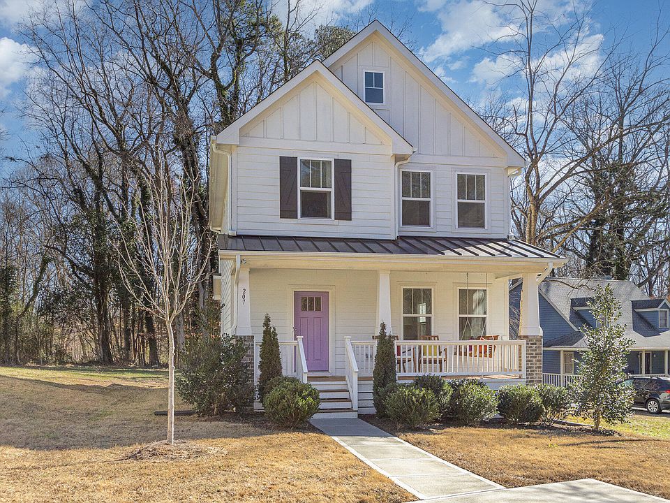 Just like new in the heart of Durham. 2021 construction. Step up to the rocking chair porch and have a sip of lemonade. You are home! Four bedrooms including two primary bedrooms - one up and one down. Open floorplan with high ceilings and bright light. Kitchen is a dream! Stunning tones of soft whites and blues, Premium SS appliances and breakfast bar. Laundry room is full of sunshine. Screened porch, open private yard and large lot. Less then 10 minutes from downtown Durham, Duke and UNC. Mortgage is assumable FHA, please consult document section for more info.