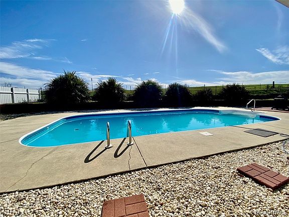 Built to stay a while! This 3 bedroom/ 2 bath in Bellview is nicely updated and has an inground salt water pool. Approx 1850 sf of living area, a spacious 2 car garage, interior storage off of the garage (could be converted to a home office), screened back porch, and covered patio. Wood laminate flooring thoughout. The main bedroom features 2 walk-in closets, and an updated bath with separate vanities and an oversized tile shower. Triple tray ceilings in the greatroom with a focal point fireplace. Large laundry room even has space for a freezer. The kitchen has tile countertops, a smooth surface range, built in microwave, refrigerator, pantry and breakfast bar. The breakfast area opens to the screened back porch which overlooks the sparkling 16x32 inground salt water pool. Nicely landscaped with plenty of privacy. Side yard beyond the white fence goes with the home. Zoned to Millbrook Schools (Elmore County), approx 20 miles from Maxwell AFB & downtown Montgomery.