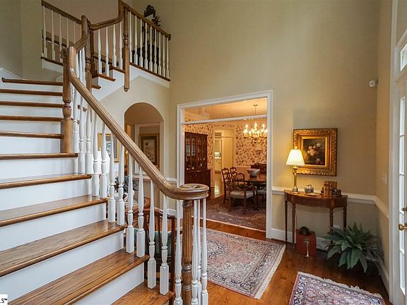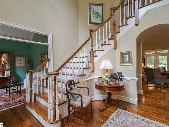Great opportunity to get into one of Greenville's more popular premier established neighborhoods! As you drive up to this great home, you will be impressed with the wonderful curb appeal as this home is situated nicely on the almost full acre wooded lot. Most of the living space is intentionally located on the main level with an open floor plan, vaulted and trey ceilings, and formal rooms. Much of the main level is also adorned with beautiful hardwood floors. The quality of the construction is evident in the heavy crown and chair moldings, solid craftsmanship, and attention to detail. The kitchen has a practical set up with large center island with bar seating, hardwood floors, tons of cabinets, recessed and under cabinet lighting, and includes a desk work station. The octagonal breakfast room is attached and also features hardwood floors and back deck access door. The master suite is unique in that it includes 2 full baths (one with a walk in shower and one with the jetted garden tub), two walk in closets, and also a separate office with built in book shelving. Upstairs you have two additional bedrooms plus a bonus room (4th bedroom with a closet), a full bath with dual vanity, and a huge walk in attic storage area. The large lot is loaded with extensive professional landscaping and includes just enough grass area in addition to a wooded setting in the rear for tons of privacy. Other features include plenty of driveway space with separate parking area, walk in laundry room with built in cabinets and work sink, central vacuum, security system, wood blinds throughout as well as plantation shutters. Also, the large back deck spans the rear of the home and presents a perfect setting for grilling and entertaining.