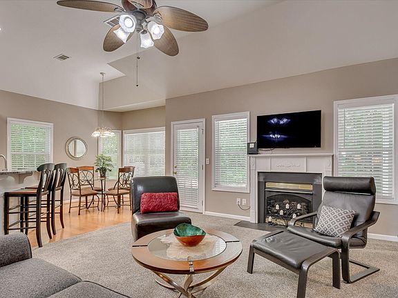 Boxwood Cottage is now available for purchase. This well-maintained stucco home offers everything you are looking for. It features an open concept living space with cathedral ceilings throughout and a cozy gas fireplace. The kitchen has been updated with granite countertops, stainless steel appliances, and includes a charming breakfast room and bar. The master suite boasts a spacious walk-in closet and an en-suite bathroom with a double sink vanity, soaking tub, and shower. On the front side of the home, you will find two guest bedrooms that share a guest bathroom. Additionally, the property includes a landscaped yard, a two-car garage, and the roof and AC system were updated about seven years ago. This move-in ready home also has the option of purchasing all furnishings.