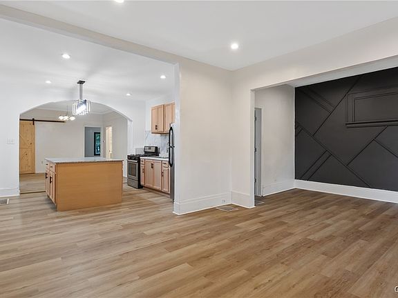 This beautifully updated bungalow offers a bright and functional floor plan. The home welcomes you directly into a comfortable living room that opens to a stylish kitchen, with the dining room situated just beyond for a smooth and natural flow through the main living spaces. Off the living room is an additional flex space featuring a decorative accent wall — perfect for a home office, cozy reading nook, or play area.